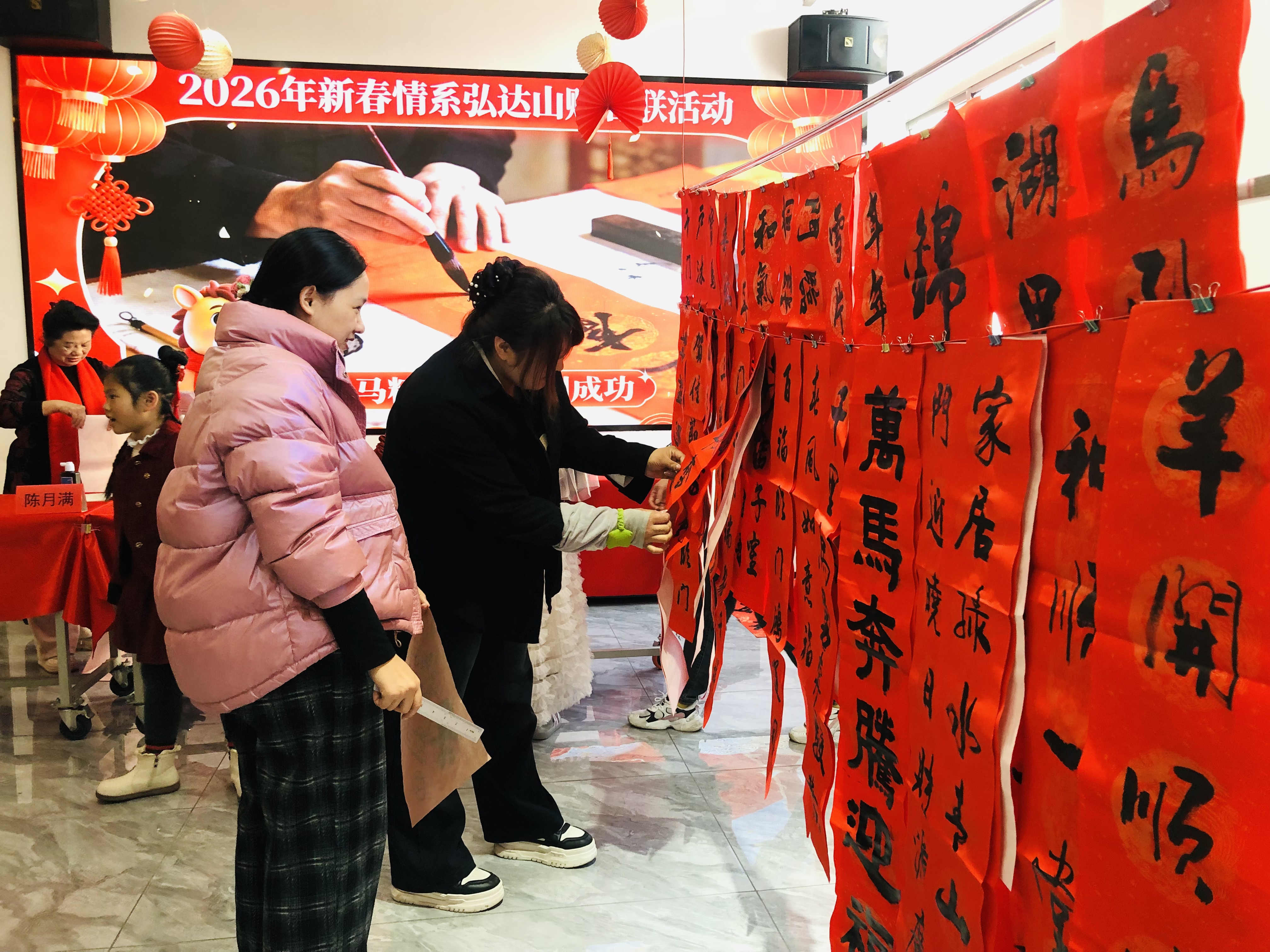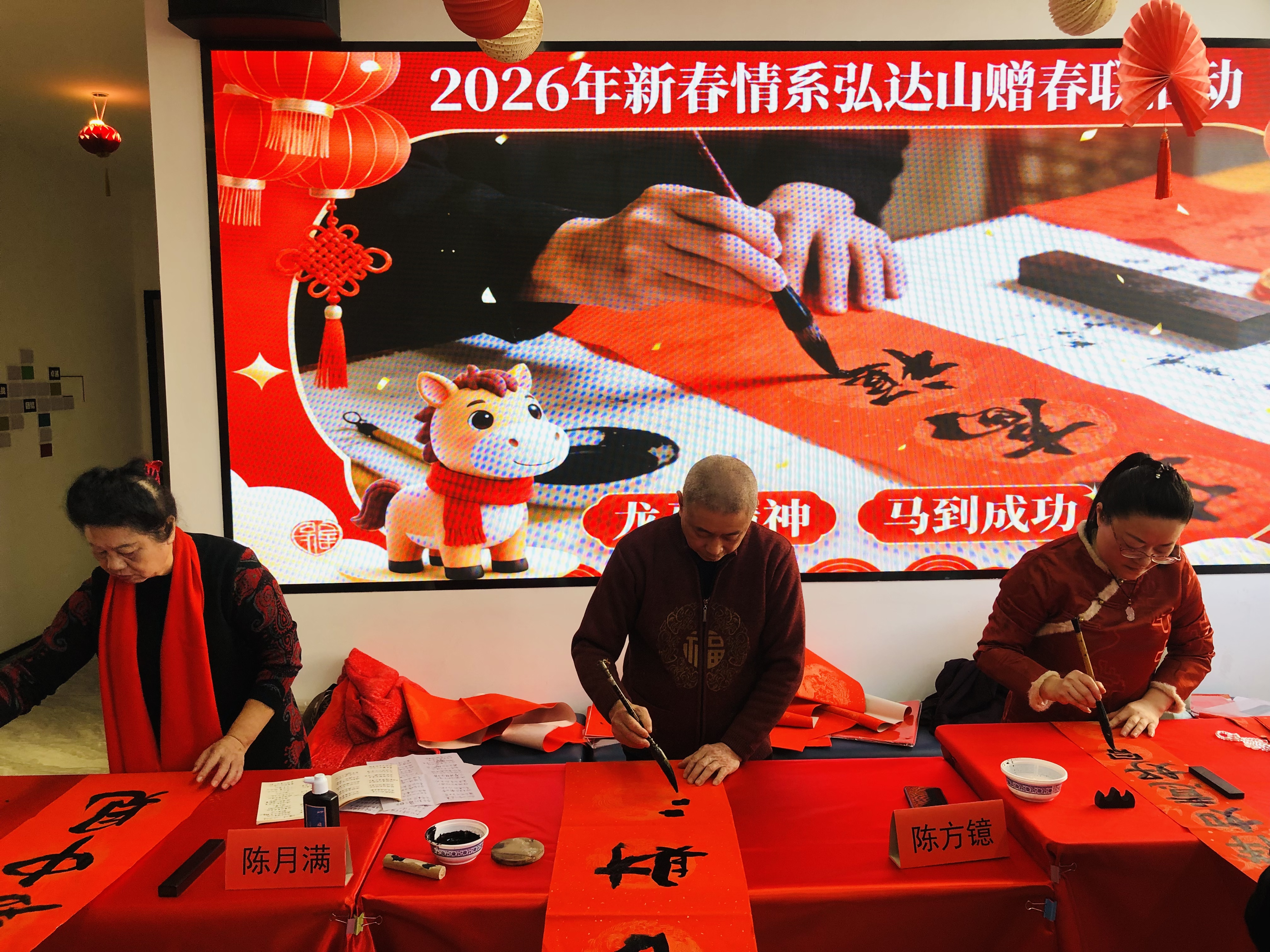 红纸轻展,墨香四溢,新春的序章在笔尖悄然绽放。值此辞旧迎新之际,公司书院特别策划举办 “2026年情系弘达山”赠春联活动 ,特邀三位知名书法家亲临现场,挥毫泼墨,为员工送上别具文化韵味的新春祝福,营造喜庆祥和的节日氛围。